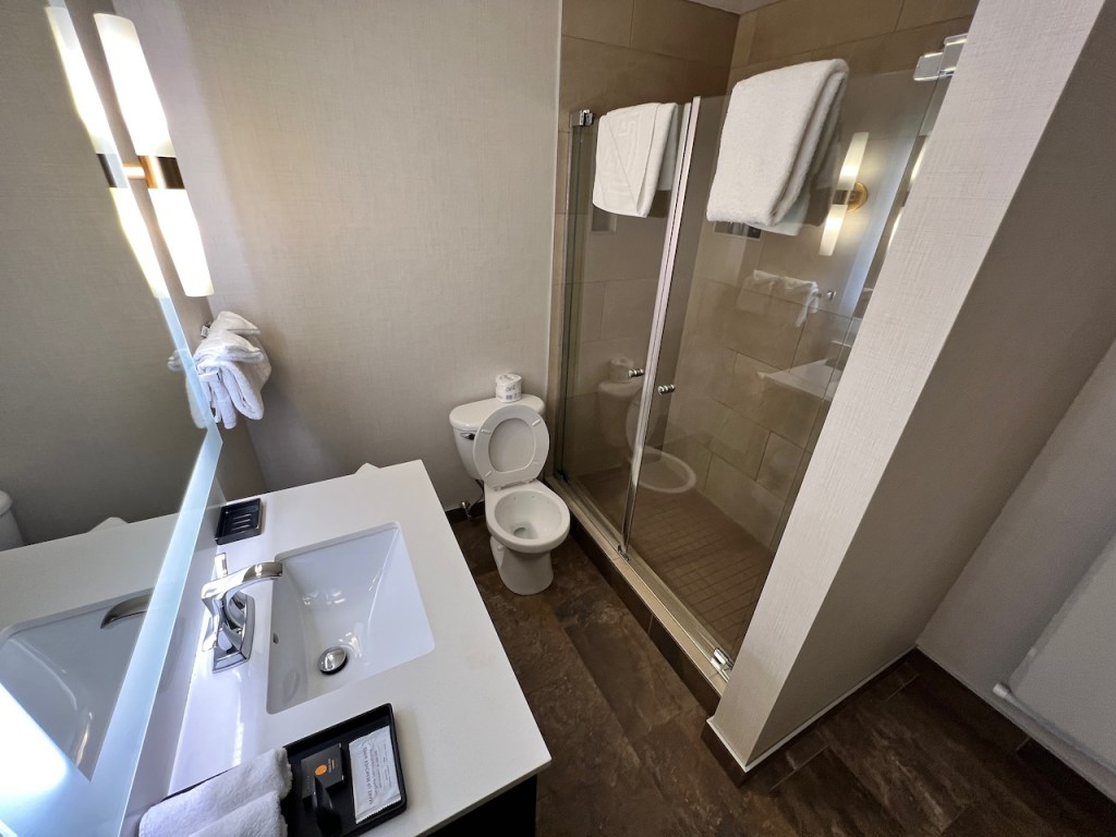 Consistent with the new renovation, the room featured a modernized bathroom. Given that it was an older hotel, the bathroom wasn’t all to spacious, but it was perfectly fine for a solo business traveller.