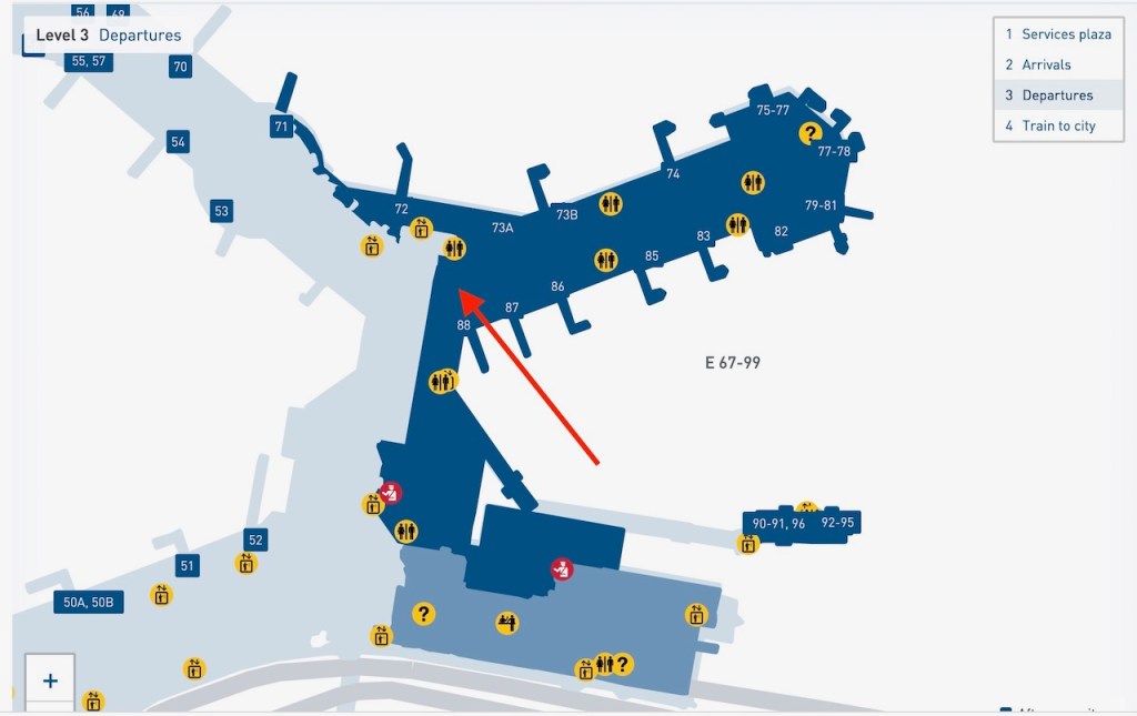 After passing through the air security screening and US customs and Border Protection Global Entry, I found myself on the secure side. I wandered down the concourse to the Plaza Premium Lounge, which is easily located next to Gate E88.