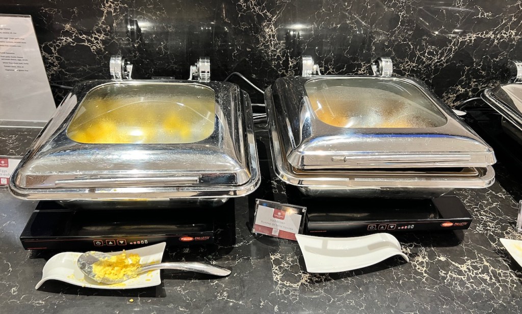The Plaza Premium Lounge networks are pretty generous on food. On today’s visit, they had much more hot and cold food than the nearby Air Canada Maple Leaf Lounge Vancouver Transborder that I also had access to.