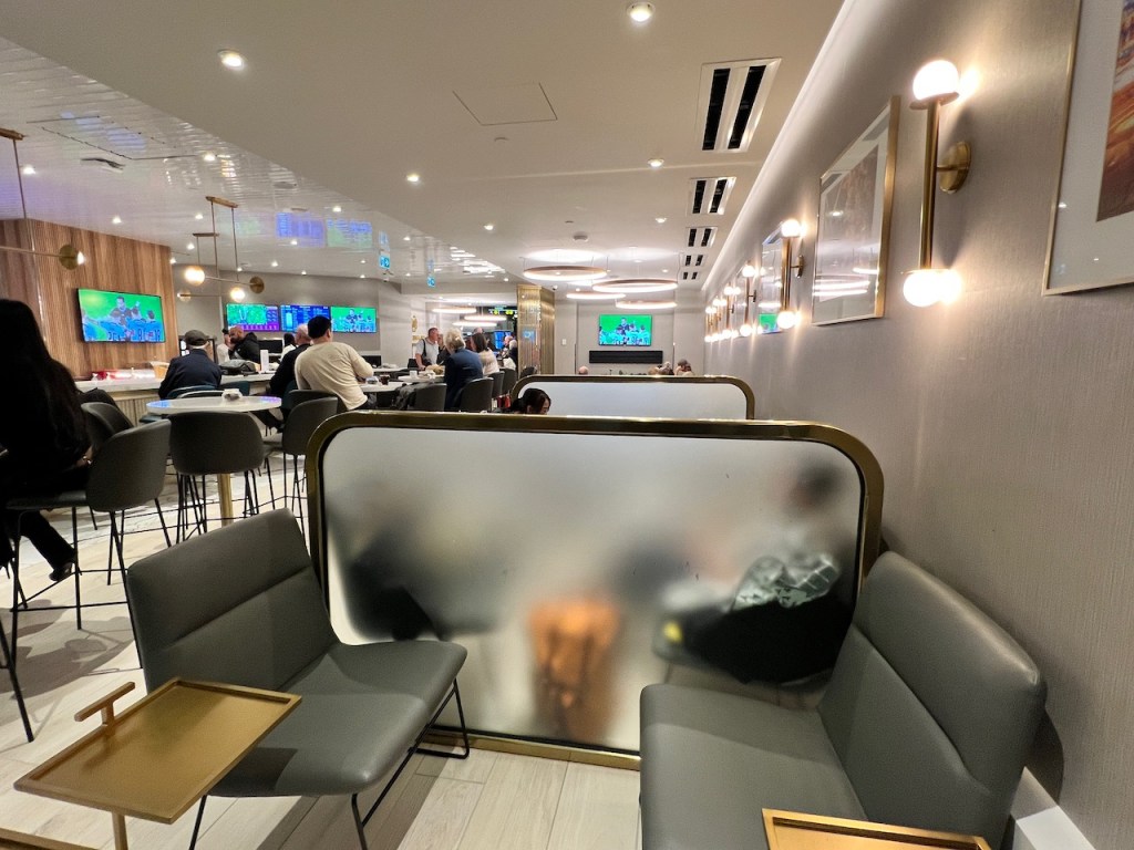 Given heavy demand, the lounge was configured with a lot of table and chairs seating. This means that there are few chair loungers in this version of the Plaza Premium Lounge and most of the seating is on high density seating. There are also a few American Express Centurion Lounge styled communal tables thrown in for good measure.