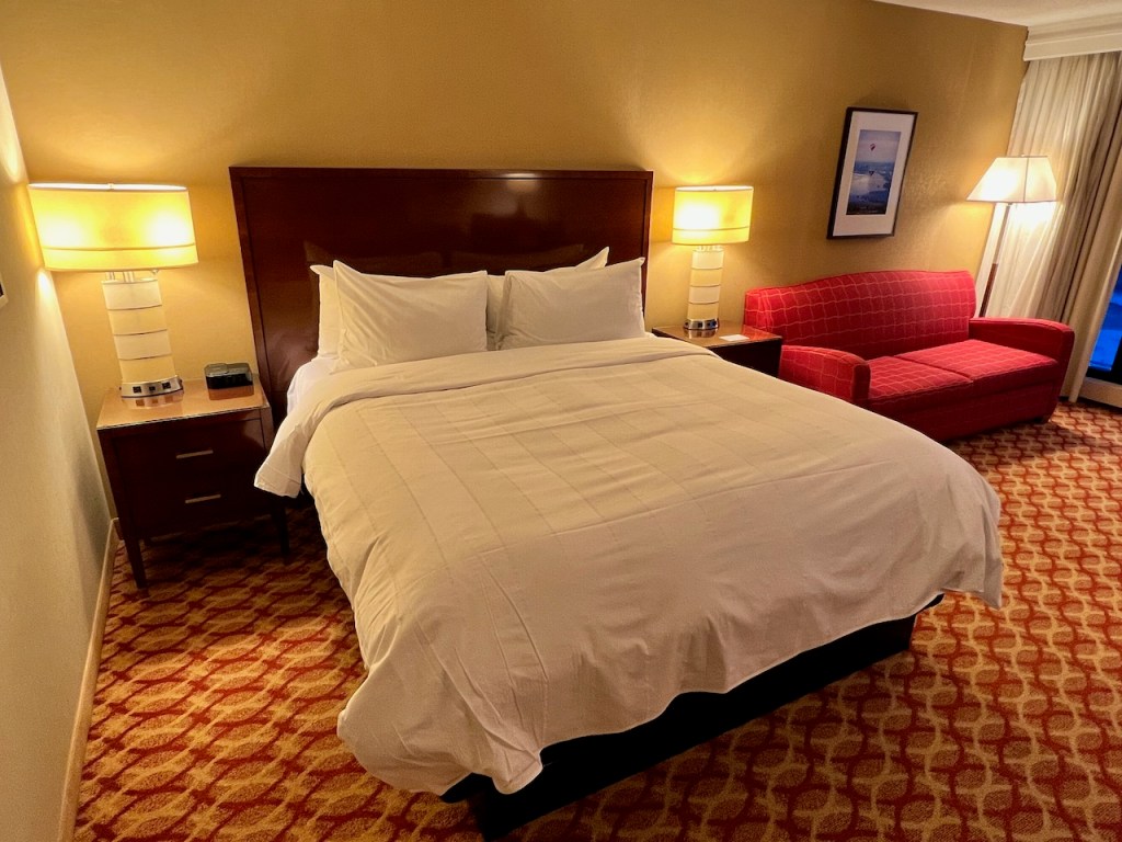 I led myself up to Room #2422, which was a one category soft upgrade from the Guest Room – One King that I booked. I received a Deluxe – Larger Guest Room 1 King Sofa Bed through a pro-active upgrade in the Marriott App that arrived about twenty four hours prior to my stay as a Marriott Bonvoy Titanium Elite member. My room on the twenty fourth floor was only a few floors down from the top 29th floor.