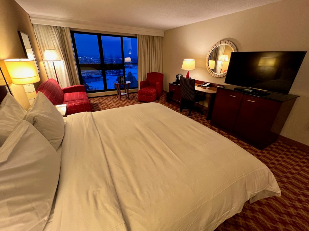 I booked my a base standard 1 King Bed, Guest Room for approximately 264 CAD ($195 USD) on my last 5 night stay. I booked through the Marriott Bonvoy website, which as a Marriott Titanium Member, entitled me to a complimentary upgrade to the best available room, including select suites, complimentary access to the Marriott Executive Club Lounge, and a complimentary late check out up to 4 PM.