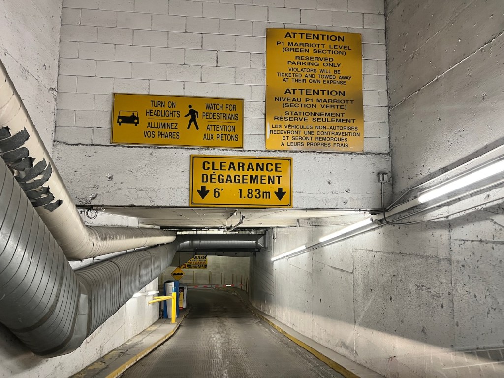 During my check in process, I was offered the opportunity to add self parking for $27 CAD a day (with in and out privileges) or the opportunity to park independently with no in and out privileges for $20 CAD a day. Feeling economical and trying to save my company some money, I opted for the pay as you go $20 CAD parking.