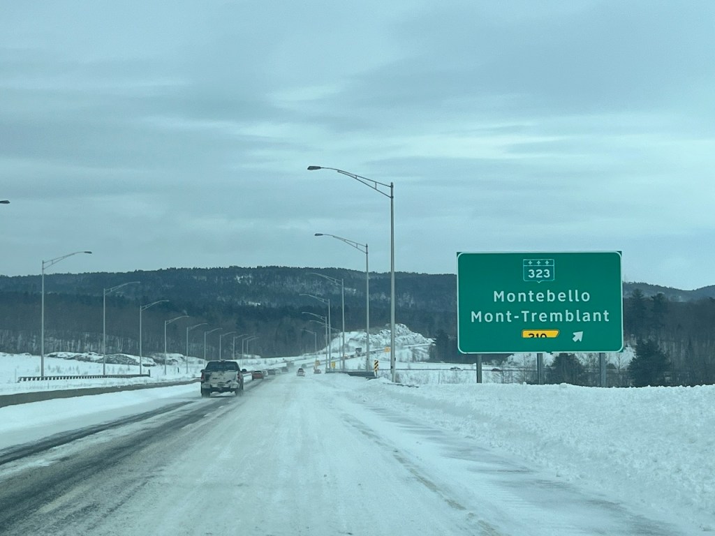 I eventually located the highway exit for Mont Tremblant on the secondary Quebec highway 323. Unfortunately, the highway itself was closed for a car accident, and I had to route around on highway 325 in order to bypass a truck that had slid off the road and into a ditch.