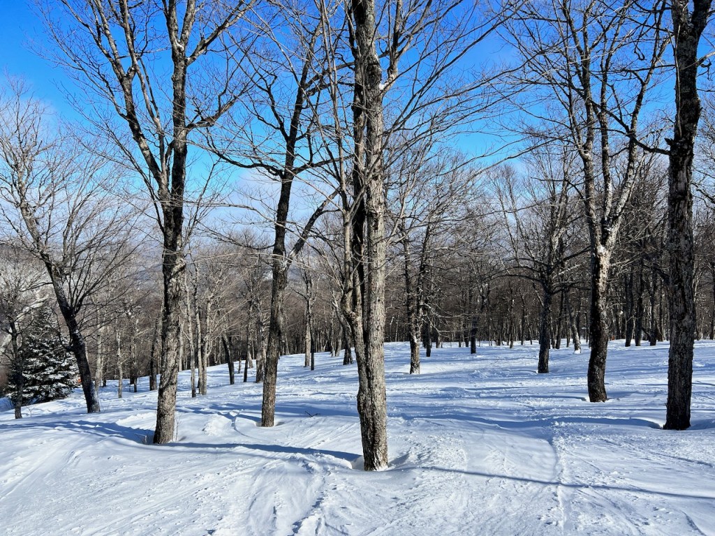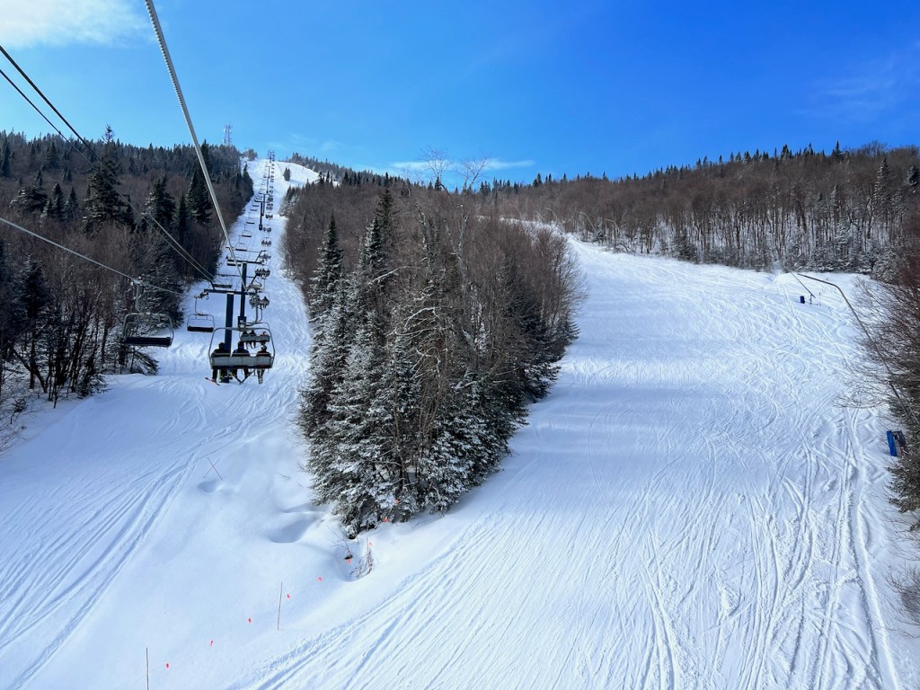I was also able to locate some gladed skiing. Skiing in Eastern Canada often offers gladed skiing which is a unique experience of skiing through thinned out trees. It’s terrific during powder days, and can often be used as a great against wind. It was pretty packed out by the time I got there, however.