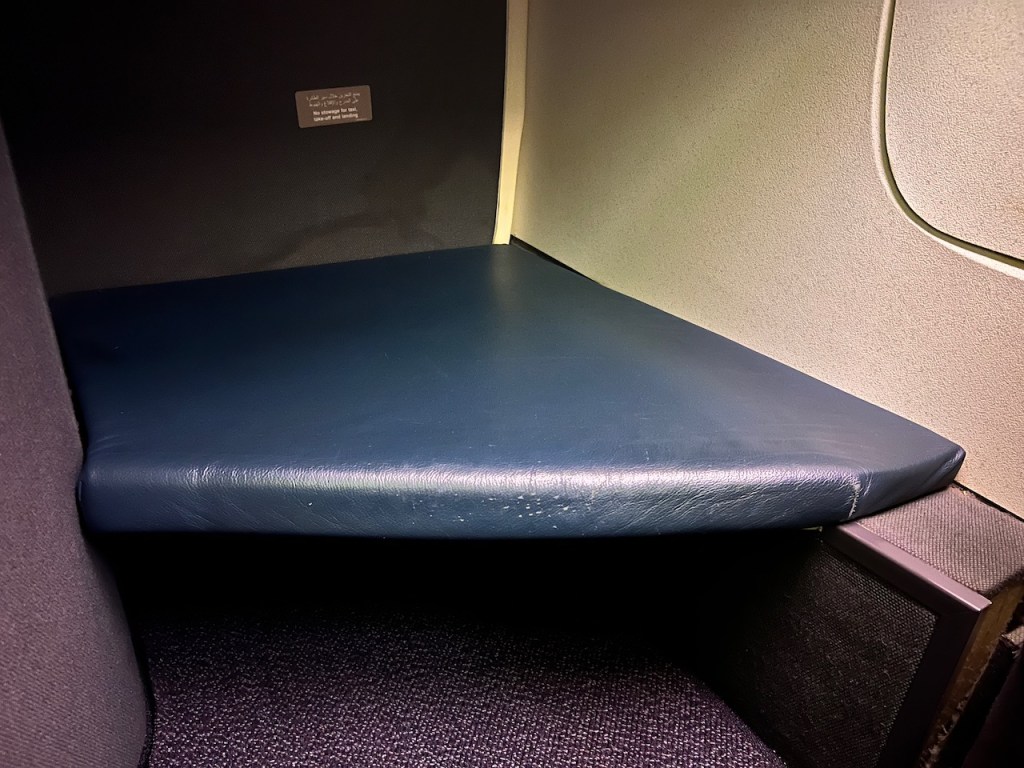 The business cabin featured a small foot rest seat that allowed for sleeping or resting your feet. It was pretty standard sized, and not all too spacious for side sleepers.