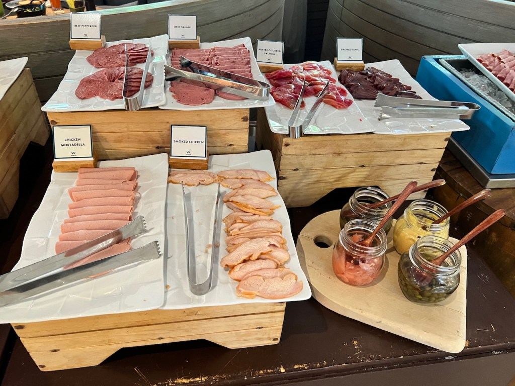 Along with an egg station, there was a fulsome buffet with fresh baked breads, muffins, doughnuts. There was an Asian Station with rotating dim sum every morning. There were cold cuts and cheese. There were heaps of various fruit smoothies along with fresh juices W style.