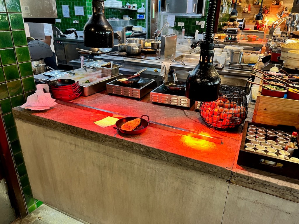 Kitchen features both an indoor and an outdoor seating arrangement. The outdoor seating arrangements offered “in water” seating, which was handy as there weren’t very many shady spots located outside.