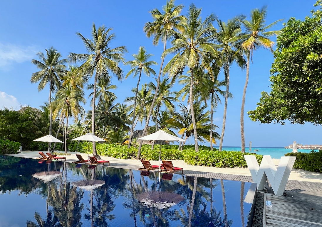 The pool offers peek – a – boo views to the W Maldives Beach. The pool doesn’t offer too many advantages, aside from perhaps being close to the bar- making it easy to get a drink on demand.