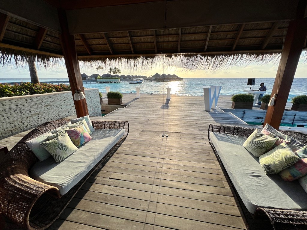 During our visit, the W Maldives held a reception event every Friday night for Marriott Elite members. During our stay, it was between 5:30 – 6:30 PM. The event was held on the arrival jetty which featured a good sunset exposure.