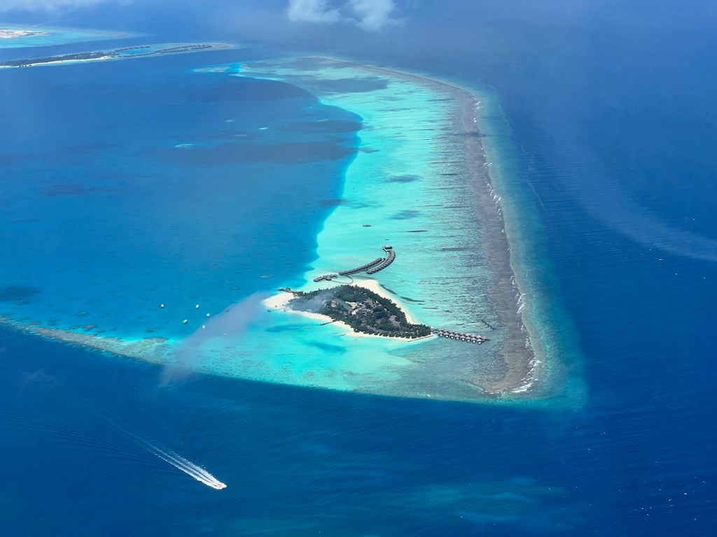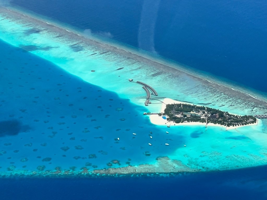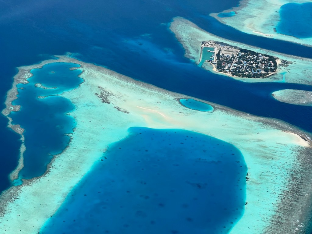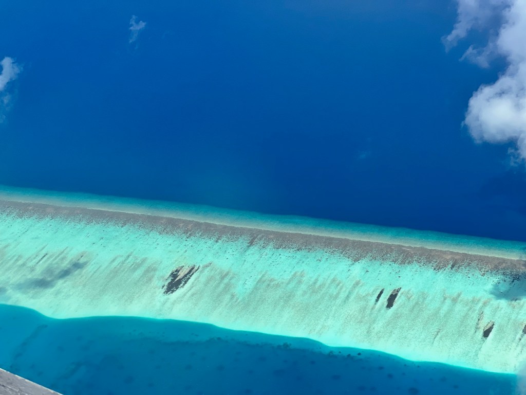 After we got out of the urban islands surrounding Malé, it was nothing but the beautiful blue atolls slipping by under the aircraft.