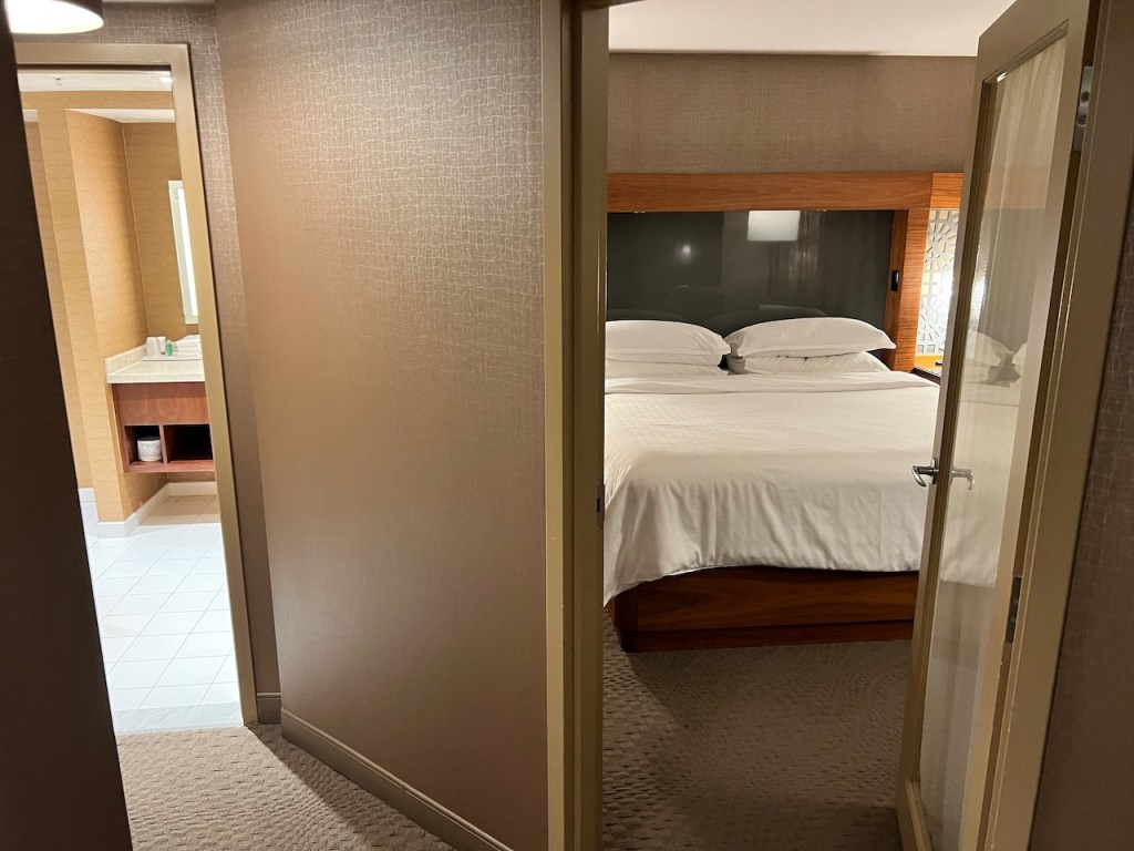 The Sheraton Toronto Airport offered a lightly refreshed room and offered us a great suite upgrade, courtesy of Marriott Bonvoy benefits. Wile I wouldn’t expect the most state of the art room, if you come in expecting an older Sheraton property, you won’t be disappointed by any means.