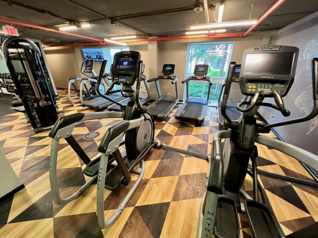 The Health Club offered a generous fitness area. The space included free weights, five treadmills and three elliptical machines. Given that the hotel was located at the airport, there wasn’t the usual crush of people at these machines during the usual peak periods for gym workouts.