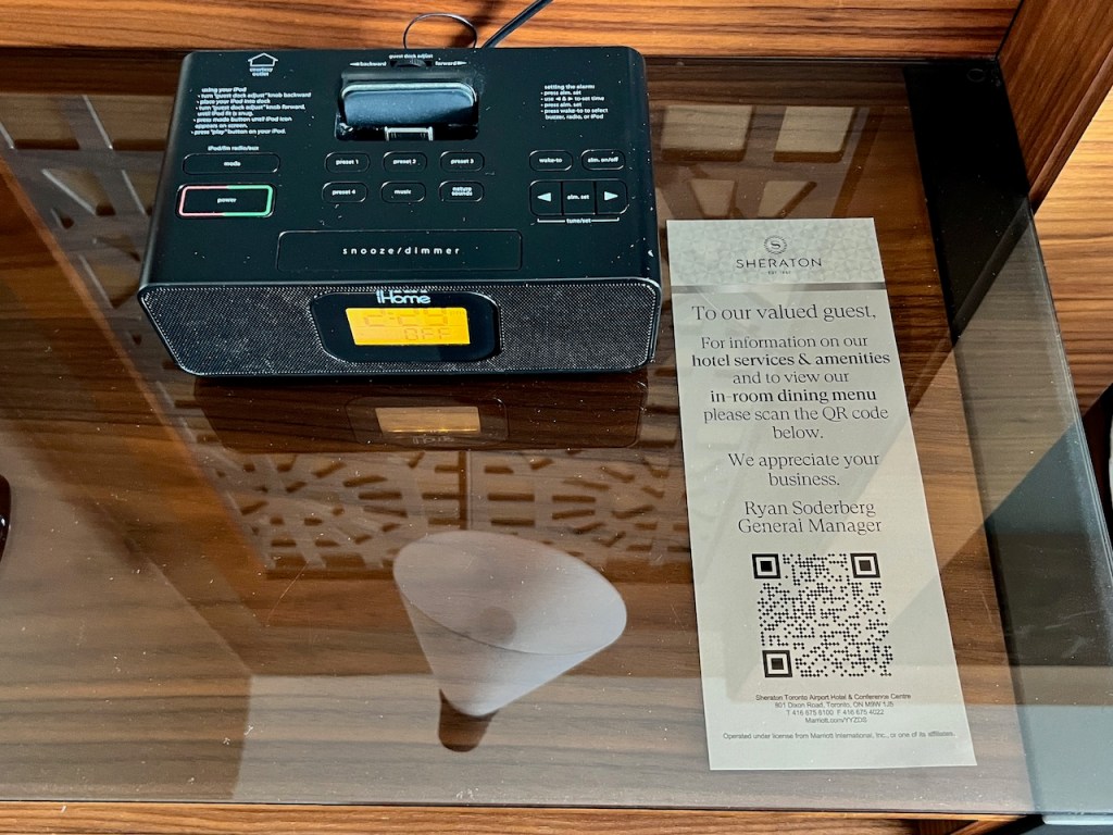 Instead of room service menu’s there were QR codes available for ordering of food at all hours.