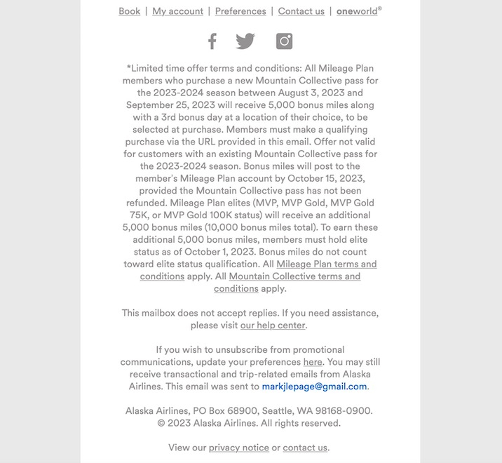 To earn these additional 5,000 bonus miles, members must hold elite status as of October 1, 2023. Bonus miles do not count toward elite status qualification. All  Mileage Plan terms and conditions apply. All  Mountain Collective terms and conditions apply.