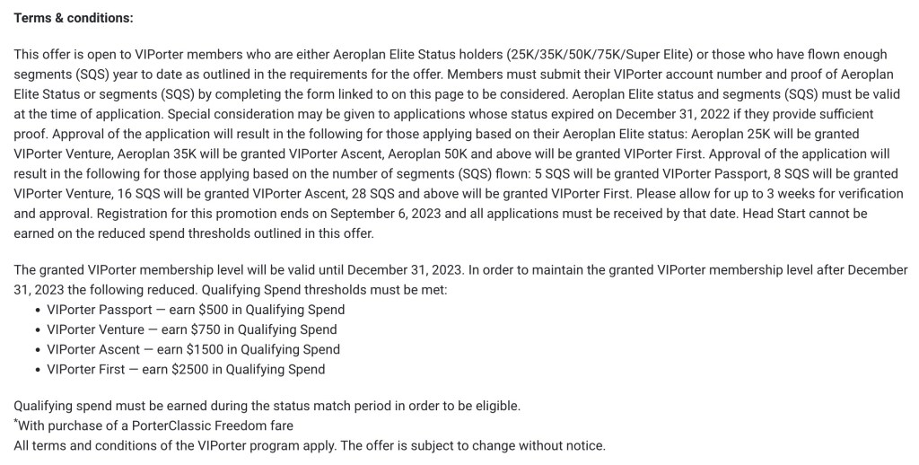 You’ll have to act quickly. Porter Airlines is only offering this status match until September 6, 2023.