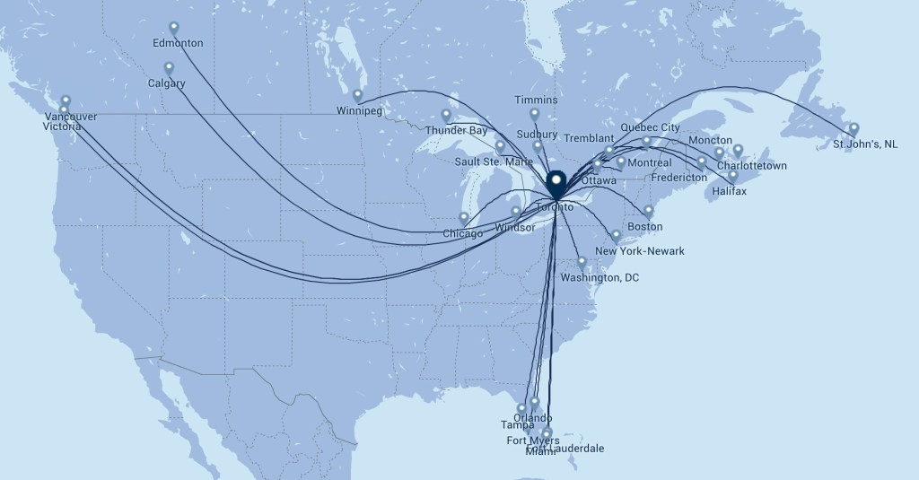 However, from my home base in Vancouver, British Columbia, the value proposition is a little different. There is currently only one route; Vancouver – Toronto which is serviced by less competitive Embraer 195 narrowbody aircraft. When flying with Air Canada, it is easy to get on wide body Boeing 777-200, Boeing 777-300 or Boeing 787-900 aircraft on this route. Porter Airlines typically flies an Embraer 195; a much smaller and cramped aircraft for the four and half hour flight. Generally, there is only one Porter flight per day which makes it even less convenient.
