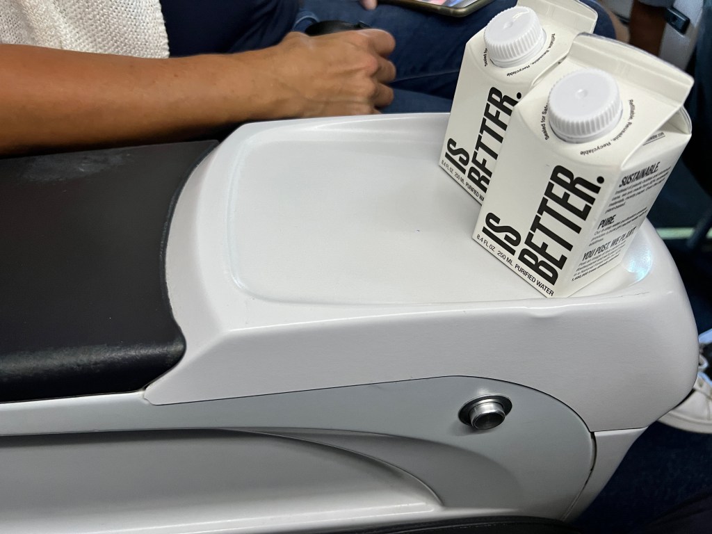 Instead, waiting for us on the seat was the usual lonely Alaska Box of Purified Water. MrsWT73 doesn’t care much for the taste of these, whereas I don’t particularly mind them.