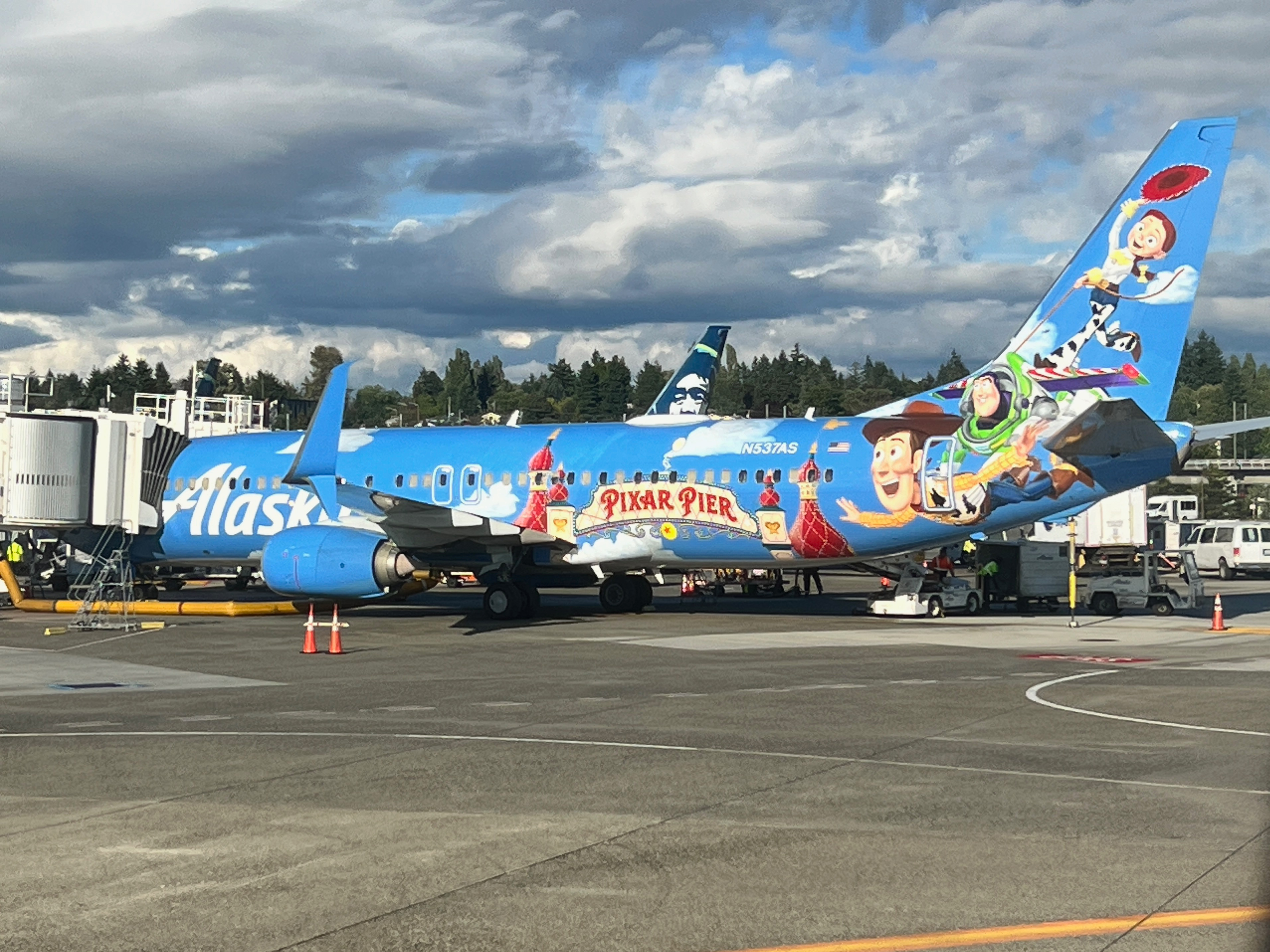 We set off about twenty minutes late and headed out towards the Seattle Tacoma International Airport runways. On the way, we had some great plane spotting opportunities. We were able to see the Alaska Airlines Pixar plane.