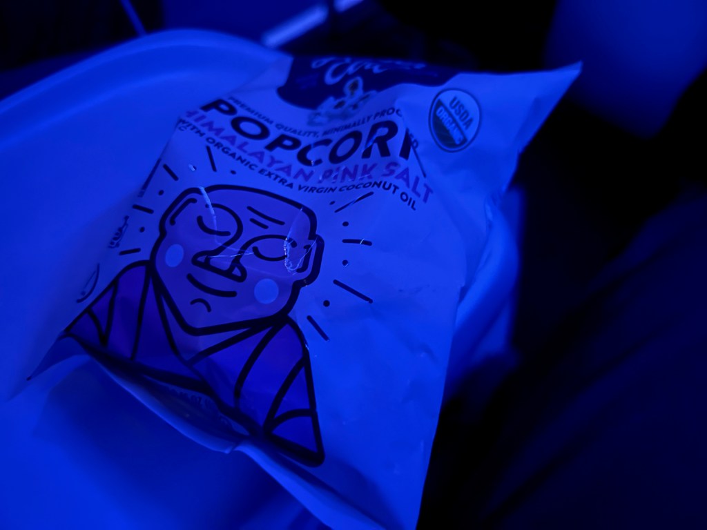 Alaska Airlines provided a second service about ninety minutes from landing. I ended up sleeping through this. However, MrsWT73 offered to collect me a bag of Himalayan Pink Salt popcorn.