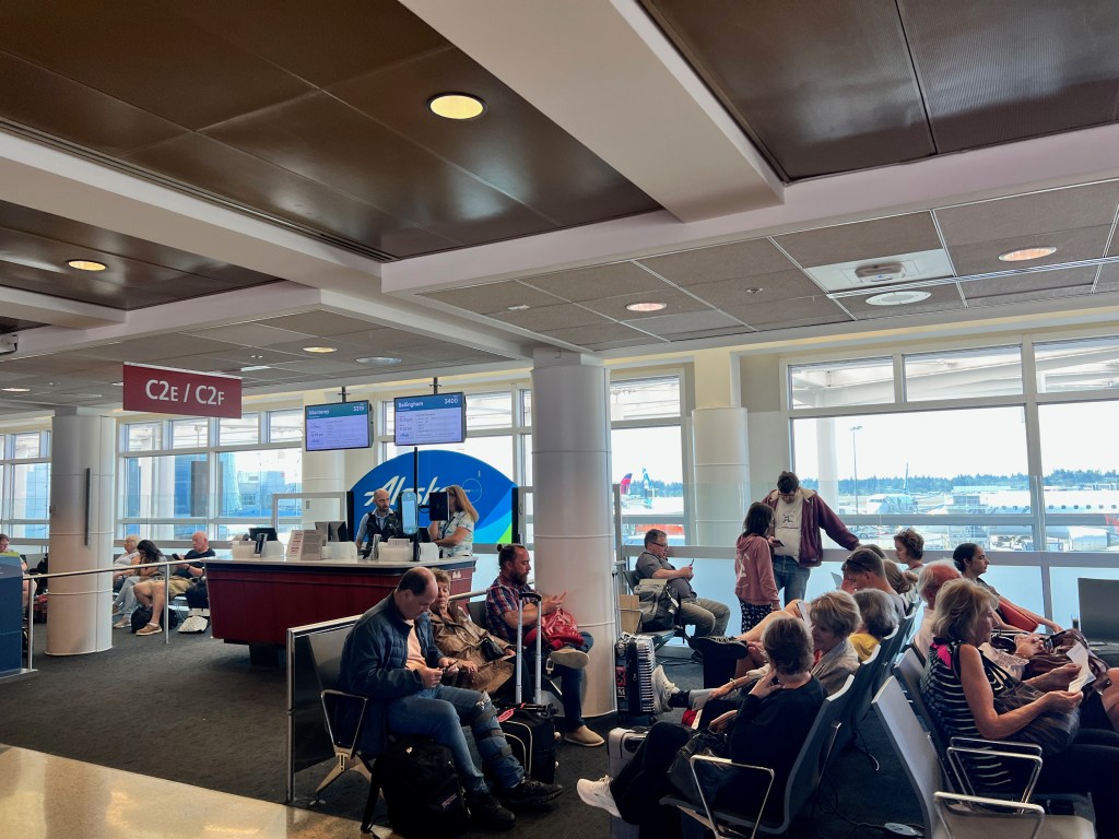 Our flight was departing from Alaska Airlines commuter gates at the C Concourse. There are a number of these gates here, and it’s always a congested mess whenever flights are set up to depart. It’s pretty typical that most travellers stretch over the entire concourse, making this place one to avoid unless you actually happen to need to be here.