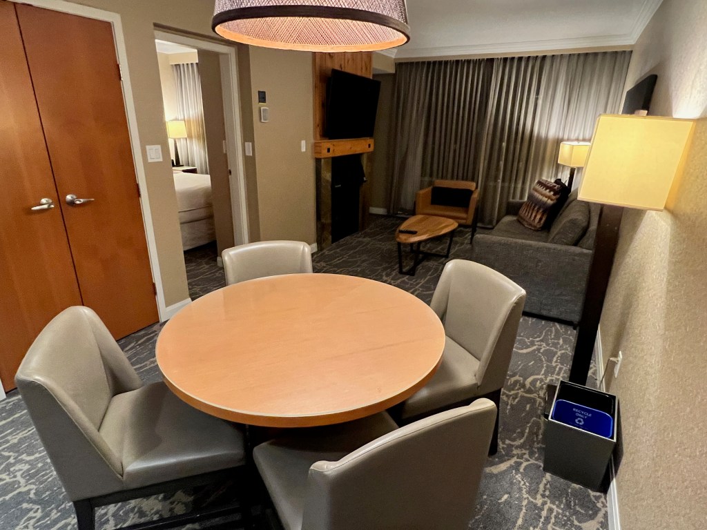 It’s worth mentioning that, being a resort hotel, there is no actual desk located in the hotel room. I ended up dropping most of my electronics and laptops on the dining room table, to set up for work during my visit.