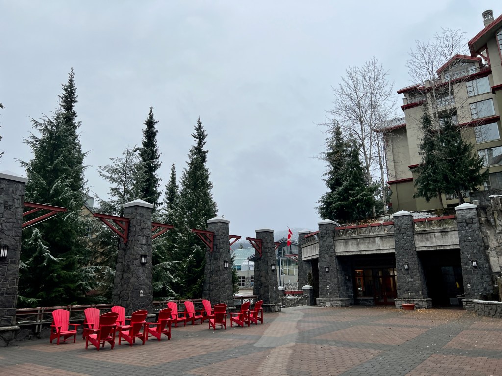 The hotel offers convenient foot access to Whistler Village in a location described as ski in and ski out. From immediately outside the Grill and Vine restaurant, you can access the pedestrian oriented Whistler Village.