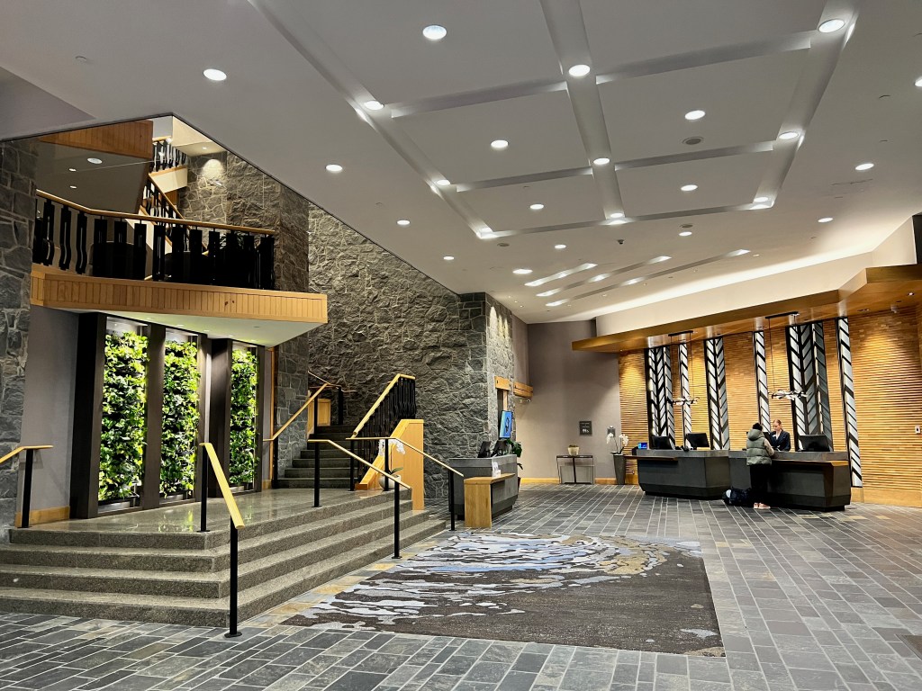 The lower lobby space at The Westin Whistler Resort makes a great first impression. The arrival’s hall features a large waiting area with a massive fireplace; just the thing to set you into the mood of a mountain resort. Based on the hotel’s design, this area was pretty much only used for arriving and departing by vehicle, since access to the Whistler Village is through a different part of the hotel.