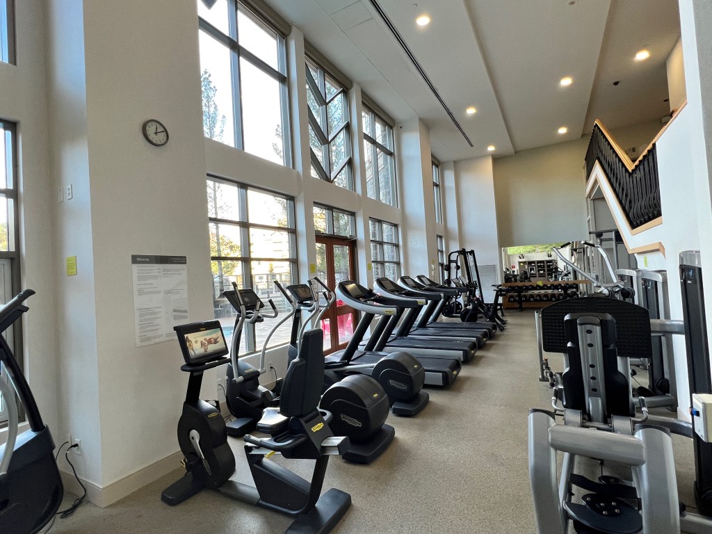 The Westin Fitness Studio offered a number of treadmills and exercise equipment that was situated against a large glass window. There was excellent daylight in the gym, making for a great workout environment.
