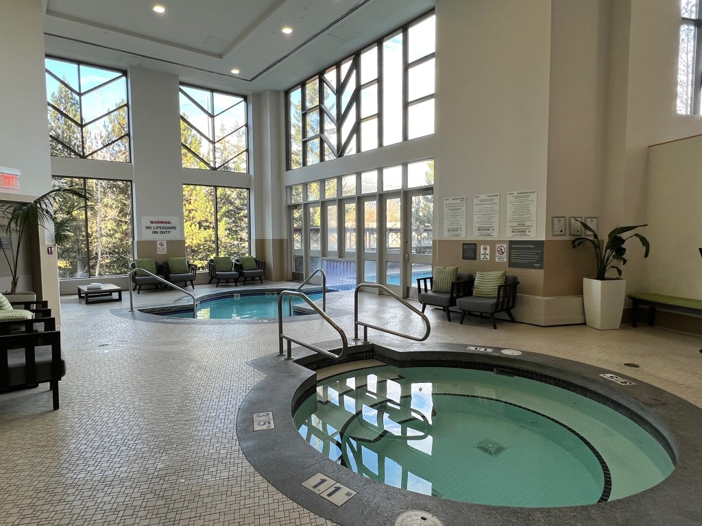 Immediately next to the gym was the indoor hot tub, and passage way to the outdoor pool.