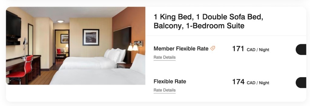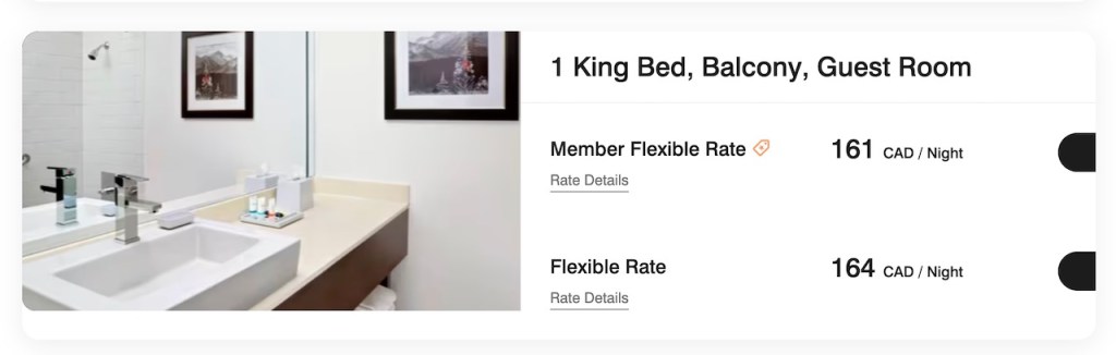 The rates are often dependent on what is occurring near the hotel during your stay. On our visit, there were a number of hockey teams travelling through the hotel with long motor coach busses. Having three teams stay on the property likely impacted the average daily rate.