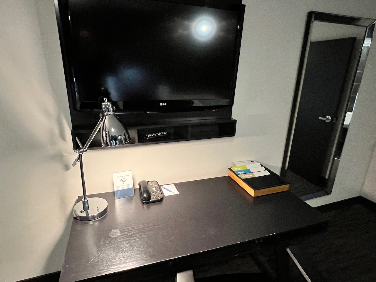 The bedroom offered a small desk area. Although I didn’t to much work in the room, I found the desk area a little small for dropping off devices, charging devices and other work products that needed to find themselves a home for the week.