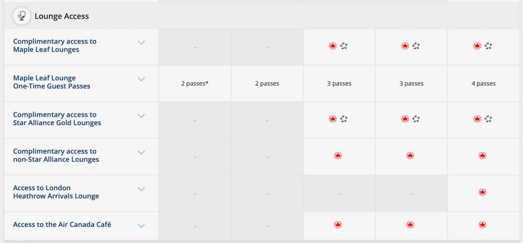 At Aeroplan 50K, a traveller gets all the additional benefits benefits of Air Canada Maple Leaf Lounge access, and Star Alliance Gold lounge access worldwide; including guest privileges. If you are a regular traveller, this can be a real benefit.
