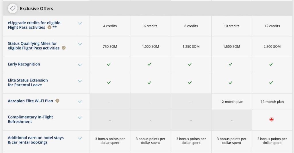 At Aeroplan 100K, a traveler gets access to the priority lines within the Air Canada network, especially at check in desks and at the Maple Leaf Lounges. The crowding has become much worse in the lounges and through the Maple Leaf Lounge network in general. As a result, if you’re flying this much, Super Elite status is the most rewarding level.