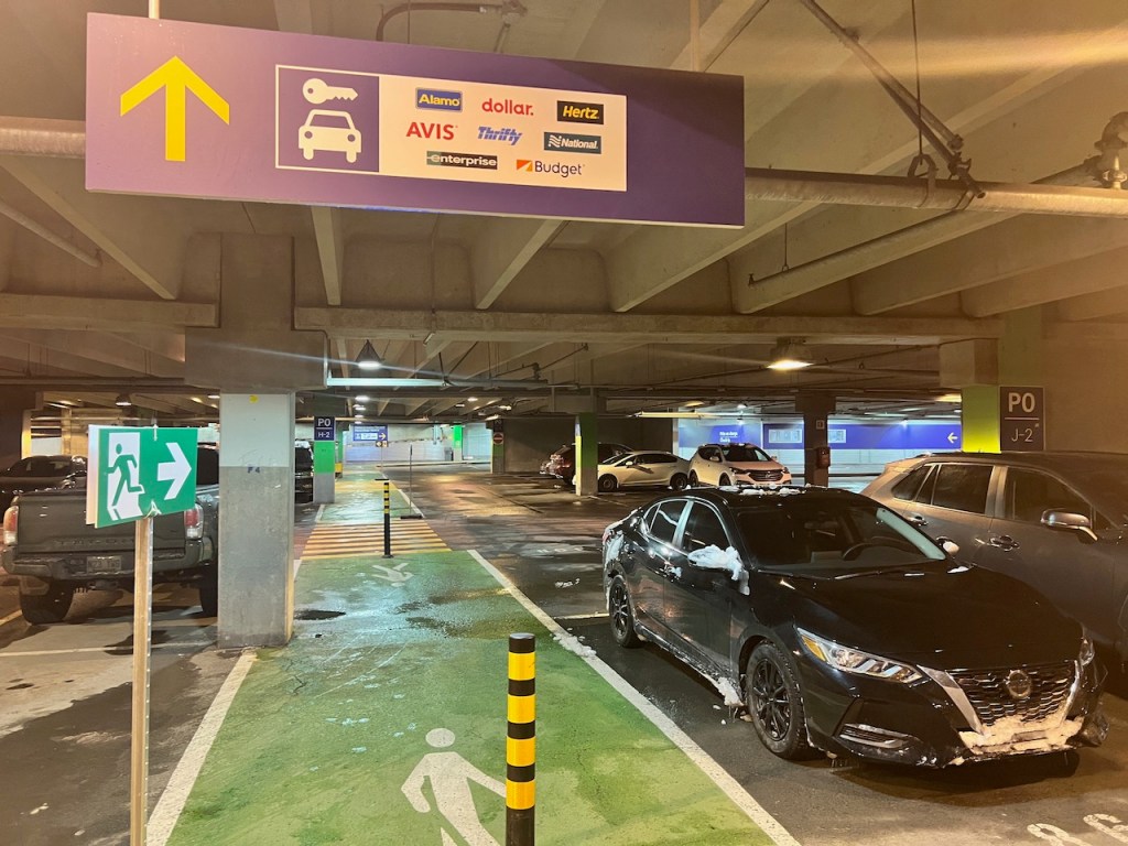 I would end up walking halfway through the garage, eventually taking a left, then another right to get to the centrally located rental car kiosk rows. All major car rental companies are located within the kiosk area.