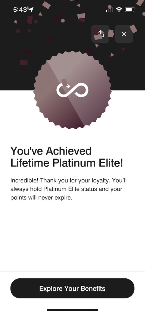 I have finally earned Marriott Bonvoy Lifetime Platinum elite status.