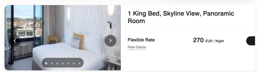 In the end, we would end up getting upgraded through pre-assignment into the nicest available room, a 1 King Bed Skyline View, Panoramic Room on the top floor. Although the pricing had softened a little since we initially booked, we were still placed in a 270€ room which is a terrific value and use of a free night award.
