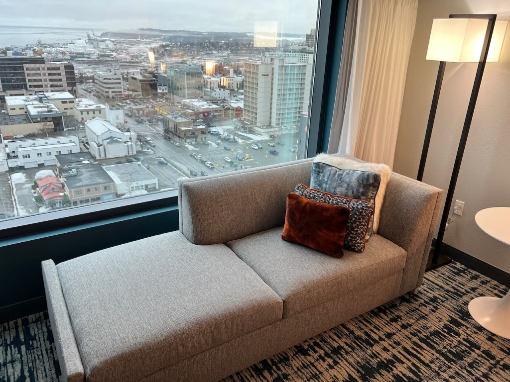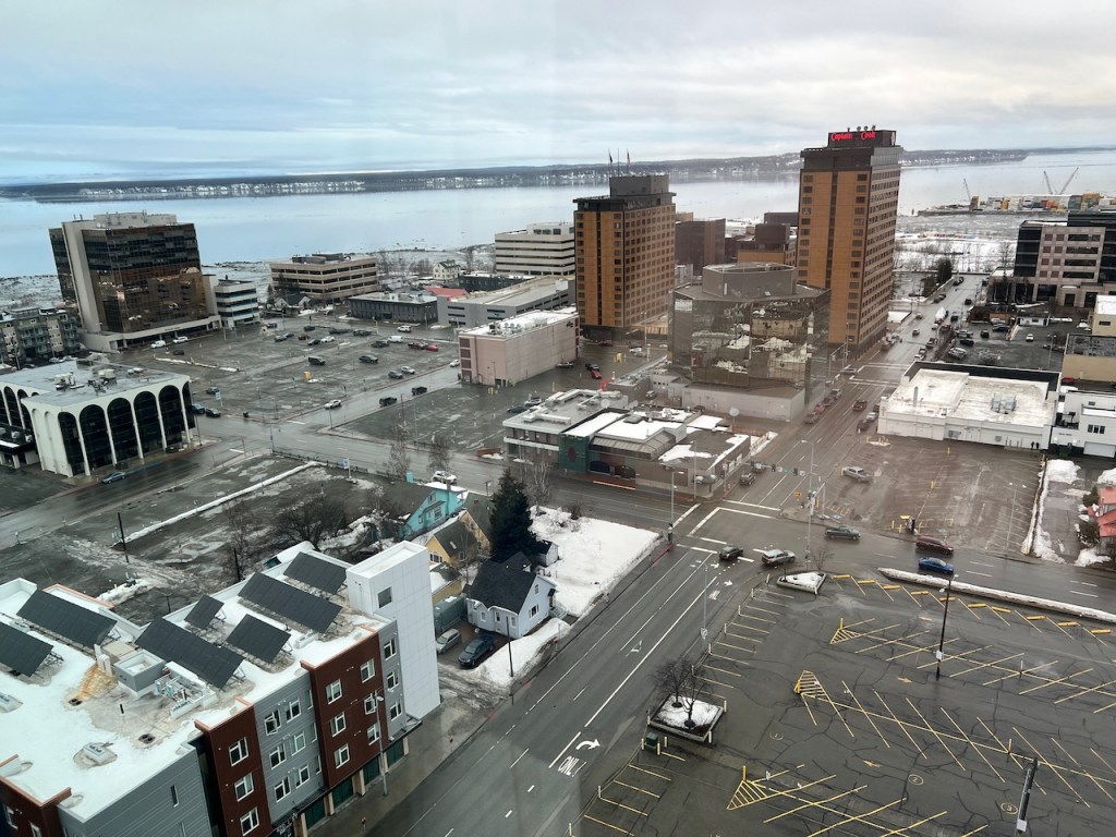 The room offered and urban concrete downtown view over the shores of Anchorage and the surrounding central business district. While it was nice to have a view, it was nothing like the views of mountains and glaciers that we had in Girdwood Alaska.