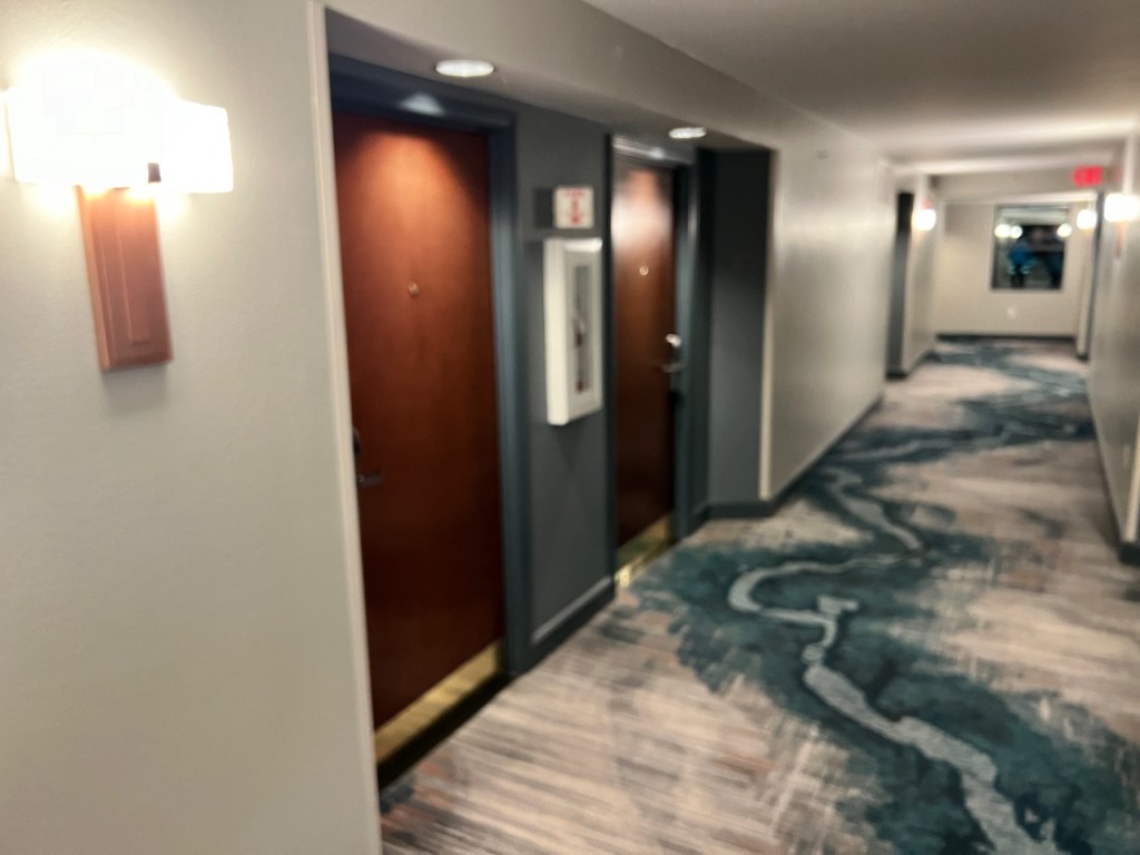 We found our way up to the 19th floor. Although I had booked a base level guest room, as a Marriott Bonvoy Titanium member we received a soft upgrade to a higher level floor with a little bit of view. Although most of the hotel had been renovated, there were still some portions of the hotel like the hallway, that looked a little bit more dated.