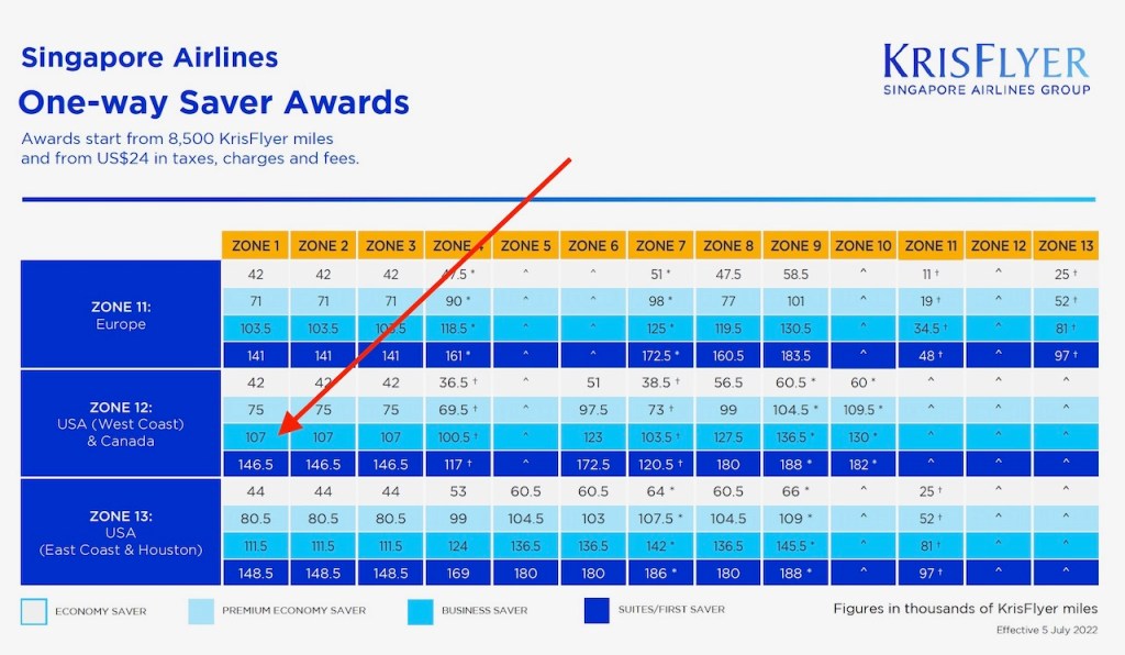 This was at a lower price point than Singapore Airlines KrisFlyer offered the same flight. As a Singapore Airlines KrisFlyer member, the same flight would cost 107,000 Singapore Airlines KrisFlyer miles each way in their Saver Award inventory. Score!