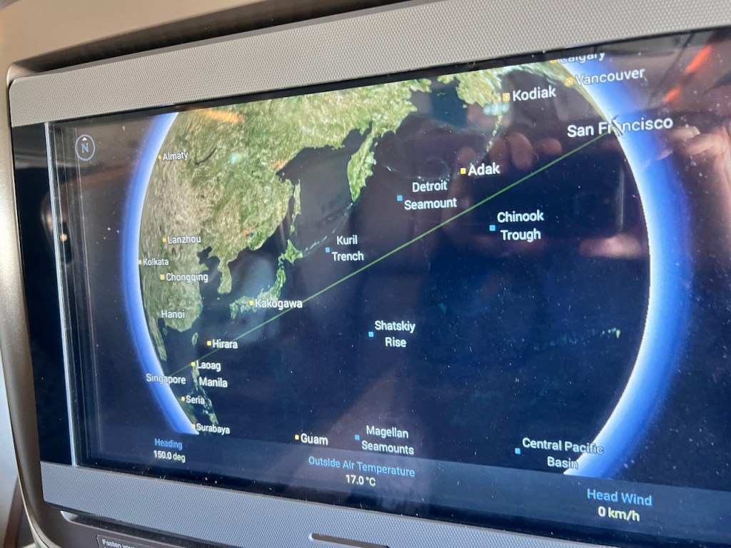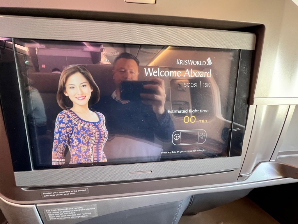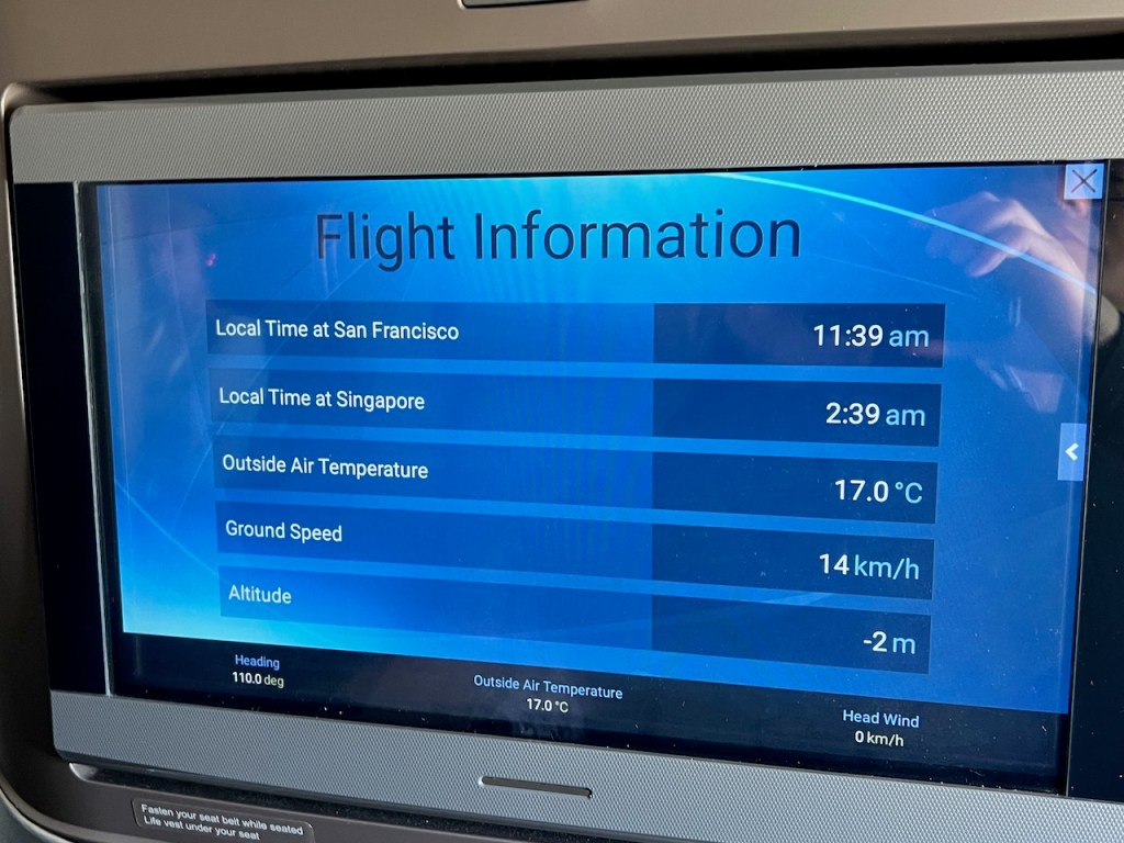 While the pre-departure beverages were being dropped off, we had a Captain’s announcement of himself as Willian Yeng along with his first officer’s. This included an announcement of a flight time of fifteen hours and twenty five minutes. There was a heavy emphasis on keeping the seat belt fastened while seated, as a result of the unfortunate turbulence incident impacting SQ921 from London to Singapore which had occurred just 5 days earlier.