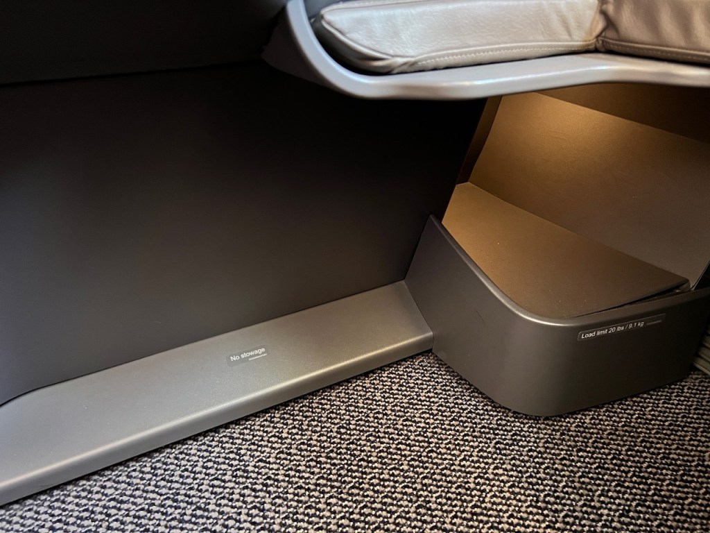 Underneath the foot rest was another storage area. I ended up storing my shoes down here when it came time to sleep.