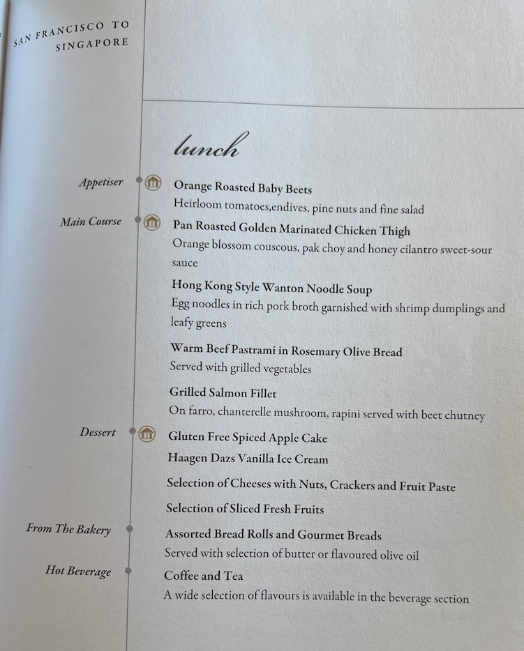 Singapore Airlines Business Class Menu