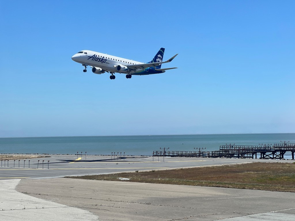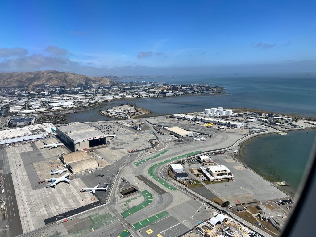 We had a short wait at the runway whole line while we waited for an Alaska airlines Embraer 175 to land. We had an immediate takeoff after that, ascending over Millbrae, California. I did a little plane spotting of United Airlines’ aircraft maintenance facility, which is quite impressive at San Francisco.