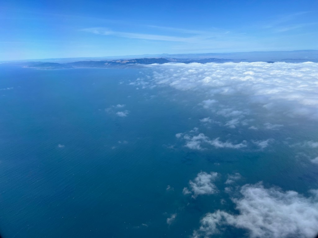 Our travels over the coastline let us through some traditional San Francisco fog. As a result we didn’t get a view of the Golden Gate Bridge on our departure.