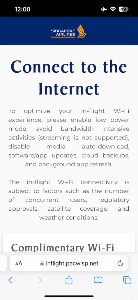 While Wi-Fi was available on the flight, I wouldn’t rely on it if you had any important internet communications to take care of during your flight.