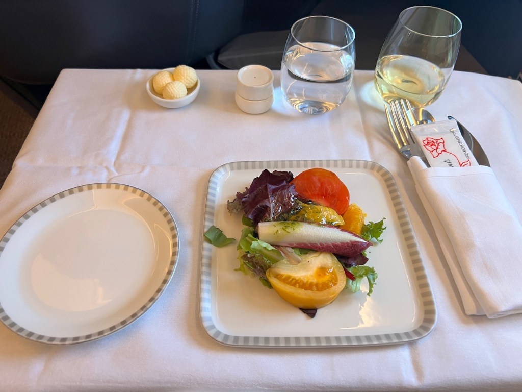 Singapore Airlines puts a lot of effort into its wine program and tastes hundreds of wines at altitude so that travellers have the best possible experience. This commitment shows as the wine list was among the better ones that I’ve experienced in an international business class cabin, rivalling Qatar Q Suites and Emirates First Class.