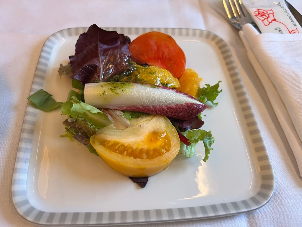 The Captain’s announcement was followed by a personal flight attendant introduction. Flight attendent Caroline took my drink order along with my first meal order. She was super pleasant and easy to interact with.
