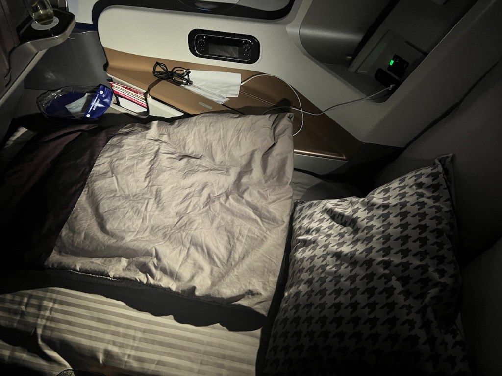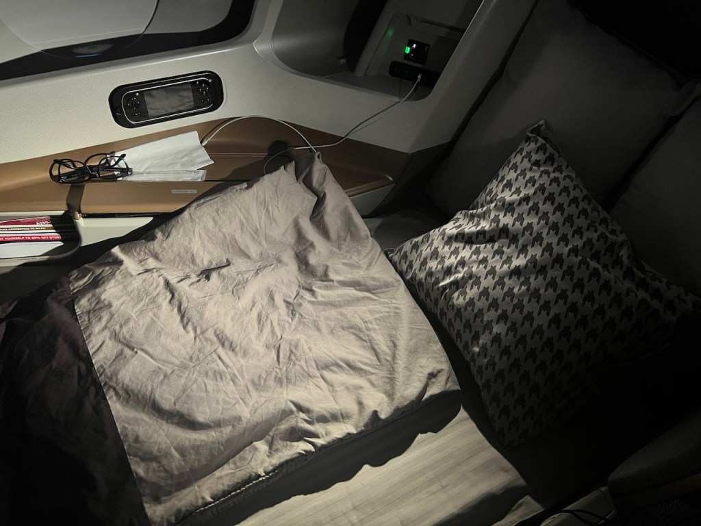 While I suspect through regular use you would get used to preparing the bed up yourself, as a first timer in Singapore Airlines long haul, I found this more complicated than convenient. Having to summon a flight attendant in order to go to bed is hardly something I look forward to coordinating when flying.