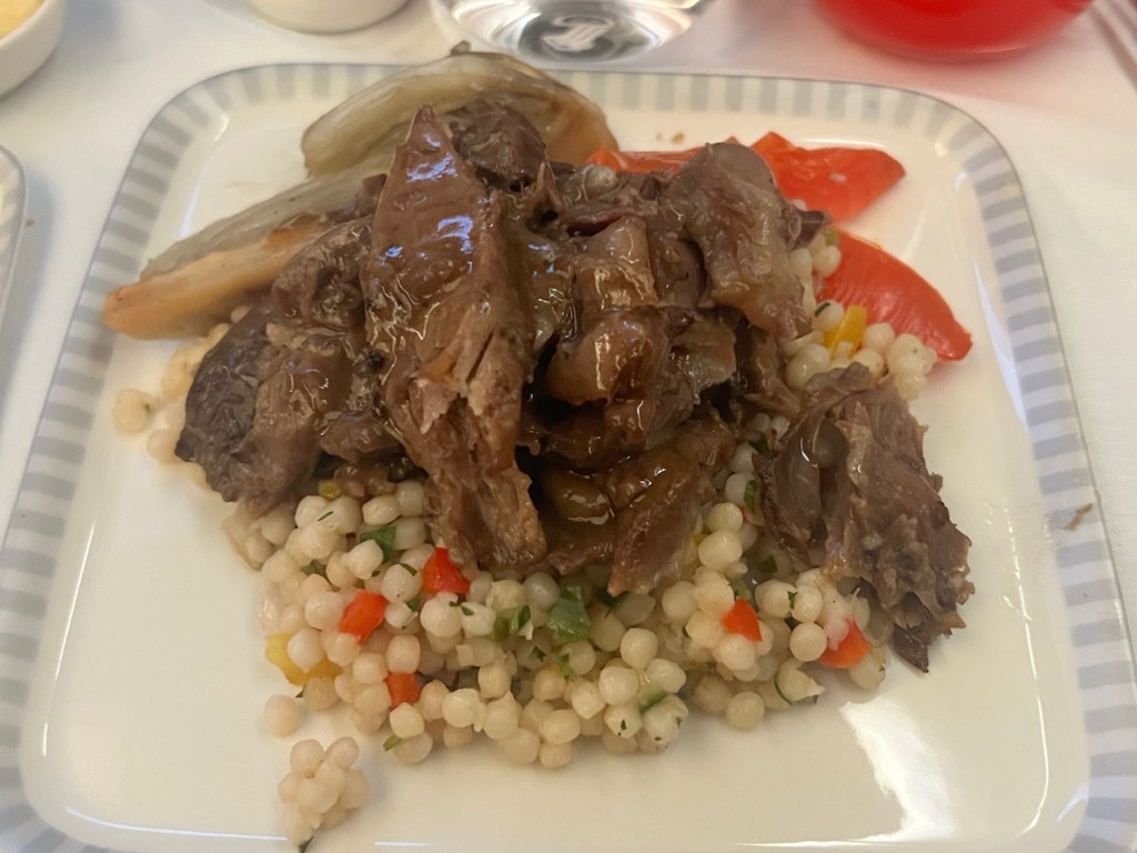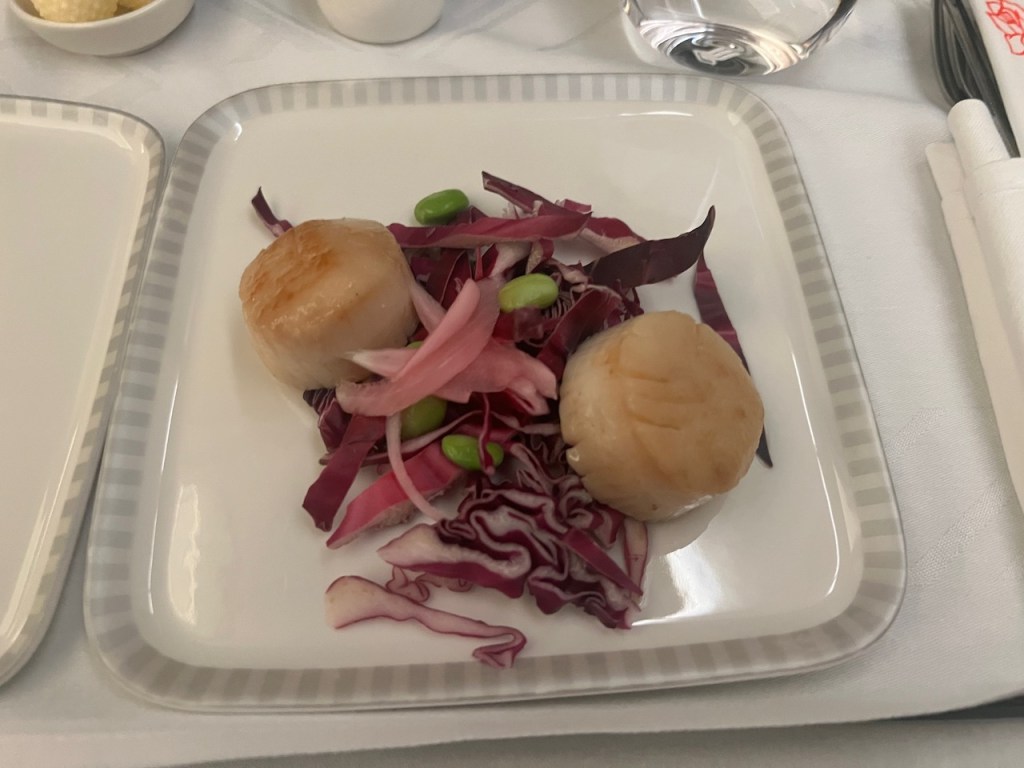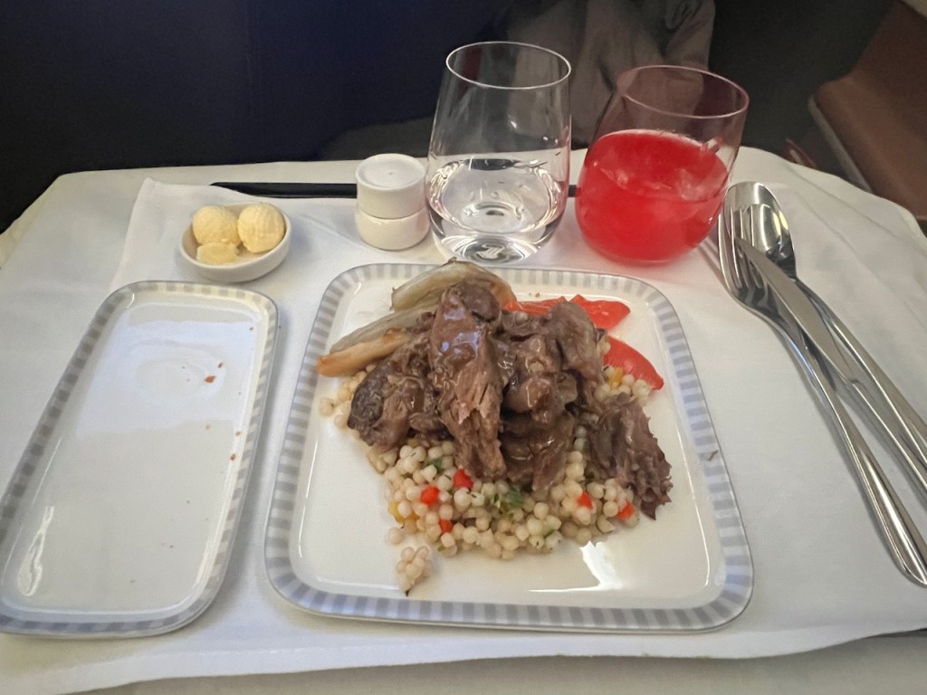 The meal service on board was split into two formal services. The first service was shortly after takeoff. Refreshments and snacks were available throughout the flight, although I didn’t happen to enjoy any of them.